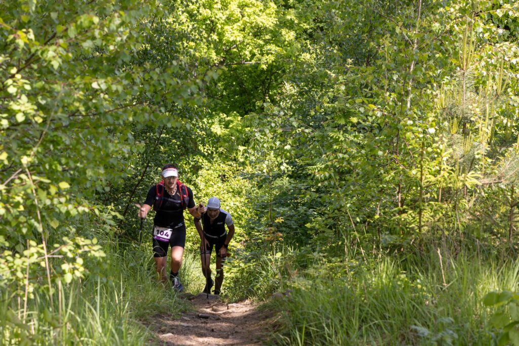 Druhé depo už bylo rychlejší a věděl jsem přesně, co chci. Trochu zklamaný z pomalejšího kola jsem tak nějak usuzoval, že se pohybuji možná někde ve druhé desítce. Těšil jsem se a věřil, že běh je mou nejsilnější disciplínou a že bych se mohl posunout alespoň do první desítky. Začal jsem zvolna a i tak jsem od prvního kilometru postupně předbíhal závodníky přede mnou. Na náročný kopcovitý terén jsem byl připraven, ale nevěděl jsem, jak to půjde po 90 km s převýšením +1500 v nohách. Bavilo mě to a postupně jsem požíral potravu před sebou a posouval se startovním polem výš. Co mi ale moc nešlo bylo doplňovat výživu. S sebou jsem měl soft lahvičku 450 ml se třemi naředěnými gely, ale za celý běh jsem upil odhadem asi jen 150-200 ml. Občerstvovačku zajištěnou organizátory jsem vůbec neřešil a neztrácel čas. Stojka k rozhledně Kabátice byla hodně přísná a připomněla přídomek závodu „extrém, který kouše“.