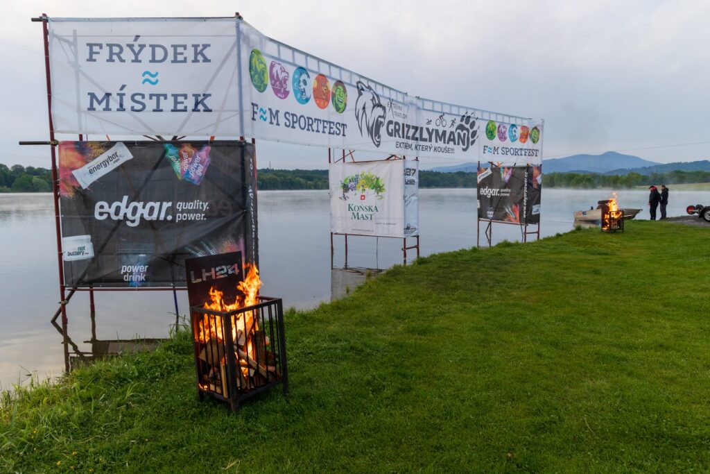 Na Grizzlyho jsem odjel s ostříleným borcem Peťou Karlíkem, od kterého jsem mohl navnímat spoustu cenných rad. Peťa je mašina, grizzlyho šel už dvakrát, nyní po třetí a neustále vylepšuje své výkony. Na místo jsme dojeli v pátek a čekala nás registrace a předzávodní rozprava, v pohodovém, dobrodružném a tak trochu punkovém duchu. Při pohledu na většinu účastníků mi bylo jasné, že zadarmo to nebude. Mikiny a trika s logy jiných extrémních triatlonů byly vidět téměř všude. Na rozpravě byla potvrzena už dřívější informace, že vzhledem k teplotě vody kolem 12-14 stupňů je plavání zkráceno na polovinu, což bylo zřejmě rozumné. Posunul se nám i plánovaný čas startu, z šesté hodiny ranní na osmou. Během registrace jsme dostali 2 pytle na depa, jeden na mokré věci z plavání, druhý na věci pro závěrečný běh. Ubytko jsme si pořešili individuálně v chatce kousek vedle, ačkoli jsme mohli využít i vyhřívaný stan v místě závodu. Samotné depo jsme pořešili až ráno před startem. Závodníci full distance se postavili na start v 6 hodin ráno. Ve startovním poli 28 triatlonistů nechyběli ani vítězové posledních tří ročníků, David Jílek, Jan Hradecký a nestárnoucí legenda Petr Vabroušek. My půlkaři jsme startovali v 8 hodin a bylo nás celkem 66, z toho 10 žen.