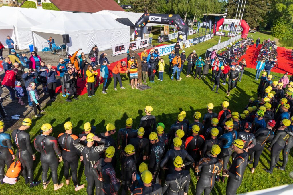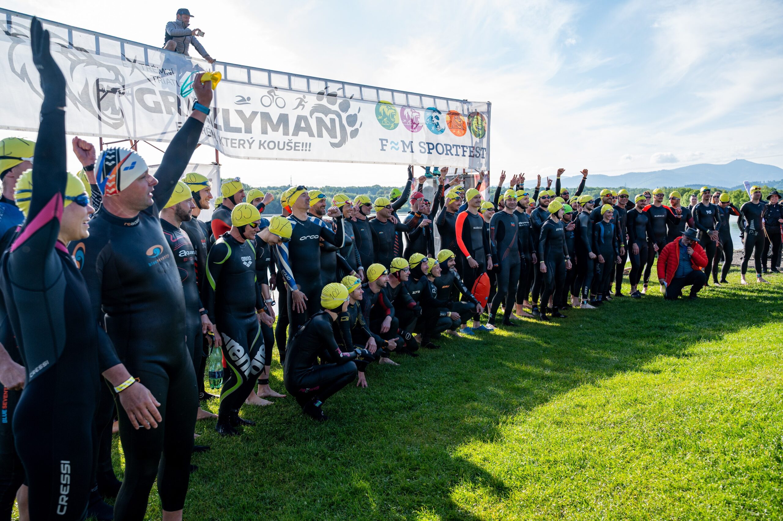Na Grizzlyho jsem odjel s ostříleným borcem Peťou Karlíkem, od kterého jsem mohl navnímat spoustu cenných rad. Peťa je mašina, grizzlyho šel už dvakrát, nyní po třetí a neustále vylepšuje své výkony. Na místo jsme dojeli v pátek a čekala nás registrace a předzávodní rozprava, v pohodovém, dobrodružném a tak trochu punkovém duchu. Při pohledu na většinu účastníků mi bylo jasné, že zadarmo to nebude. Mikiny a trika s logy jiných extrémních triatlonů byly vidět téměř všude. Na rozpravě byla potvrzena už dřívější informace, že vzhledem k teplotě vody kolem 12-14 stupňů je plavání zkráceno na polovinu, což bylo zřejmě rozumné. Posunul se nám i plánovaný čas startu, z šesté hodiny ranní na osmou. Během registrace jsme dostali 2 pytle na depa, jeden na mokré věci z plavání, druhý na věci pro závěrečný běh. Ubytko jsme si pořešili individuálně v chatce kousek vedle, ačkoli jsme mohli využít i vyhřívaný stan v místě závodu. Samotné depo jsme pořešili až ráno před startem. Závodníci full distance se postavili na start v 6 hodin ráno. Ve startovním poli 28 triatlonistů nechyběli ani vítězové posledních tří ročníků, David Jílek, Jan Hradecký a nestárnoucí legenda Petr Vabroušek. My půlkaři jsme startovali v 8 hodin a bylo nás celkem 66, z toho 10 žen.